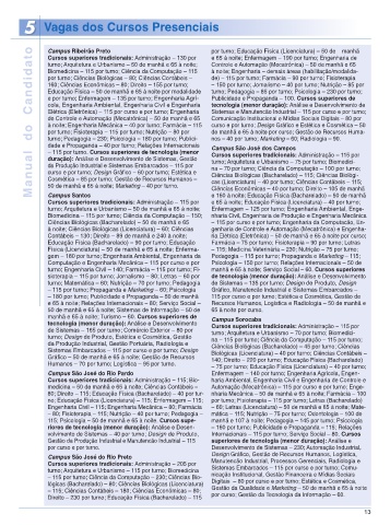 turno; Pedagogia – 230; Psicologia – 180 por turno; Publici- nos – 40 por turno; Marketing – 60; Radiologia – 90.